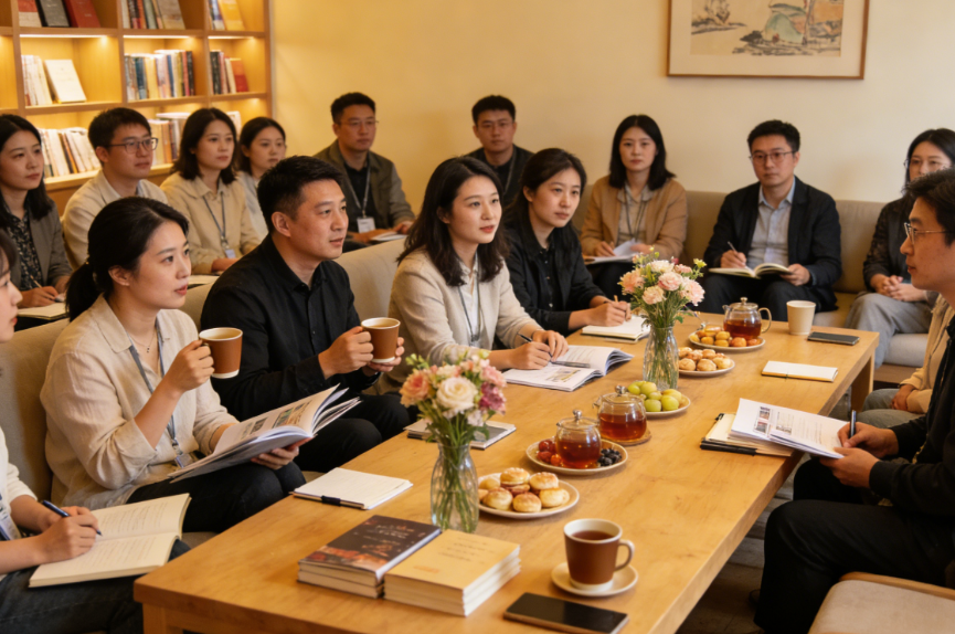 前海电商团队30 多个人的沙龙聚会场景